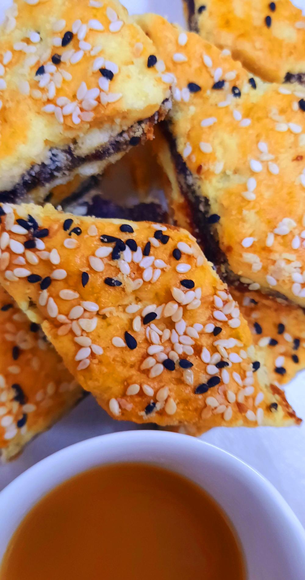ندهن الوجه بصفار بيضه مع رشة نسكافيه ونضع حبه البركه وسمسم