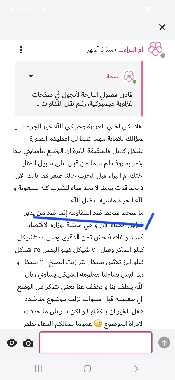 وغضبك من المقاومة وسخطك عليهم بدافع مصلحة الفلسطينيين لم نراه من أهل غزة أنفسهم تدرين ليش؟