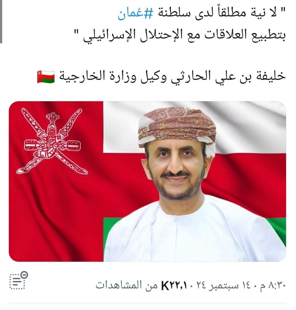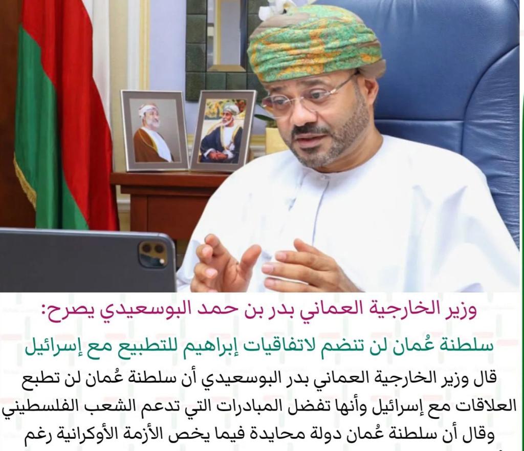 وعمان لها في التاريخ مواقف خالدة تجاه القضية الفلسطينية لا يسعني ذكرها كلها ولن تكفيها صفحات هذا الموضوع كلها والمهم أنها تعلن بوضوح دائمًا😉🤍⚖️ عن مواقفها السياسية التي كانت آخرها مطالبات وزير خارجية السلطنة بوجوب محاكمة إسرائيل على جرائمها البشعة التي أدانها بأقسى العبارات وتصريحه الأخير الأقوى على الإطلاق بالمطالبة بإنهاء اسرائيل ولم تبالي😉🇴🇲💪🏻 من تكون اسرائيل ولا من خلفها 🏴☠️🖤 ...