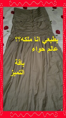 بلوزه تايقر ع موف مع تنوره فستقي لانها طويله شوي ادخلها جواة التنوره وكمان موديل التنوره ماينفع من فوقه شيء ...