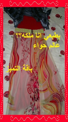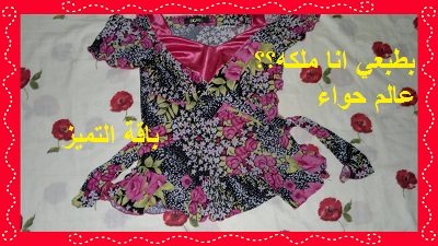 وهذا فستان مشجر وحلوو باللبس ومريح ولبست عليه شال وردي باااهت وطلع مرره حلو معاه طبعا الشال مو اي شال لااه النوع الي يجي مثلث ومخرم الي ممكن ينلبس ع الخصر للرقص المصري هههههه:hahaha: حاولت اصوره ماضبط مررره طفشني ومره لبست معاه بلوفر اسود