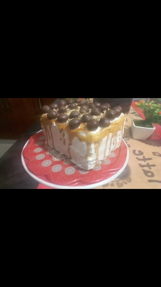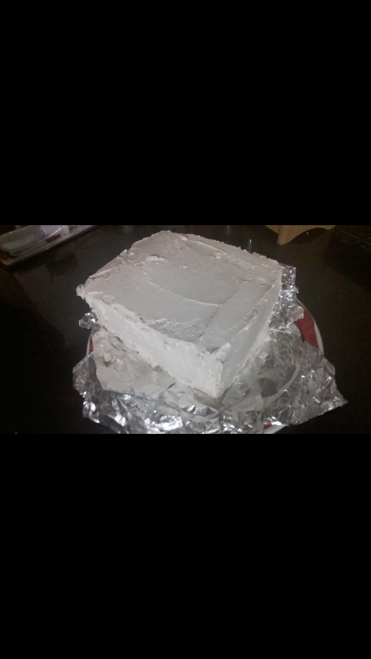 نلبس الكيك كامل بكريم شانتي مخفوق مع ملعقة كاكاو بودرة ..