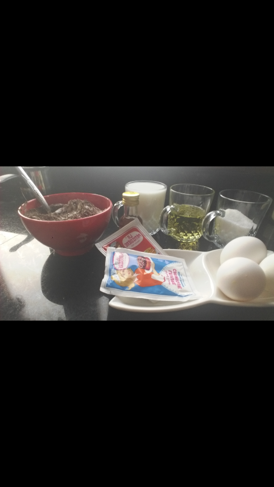 تكون مازجين الدقيق مع الكاكاو و البيكنج بودر نضيفهم بالتبادل مع الحليب