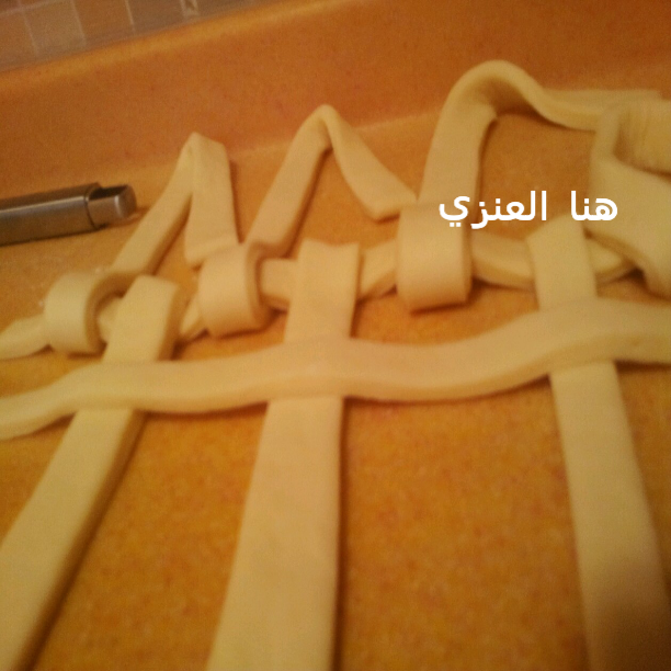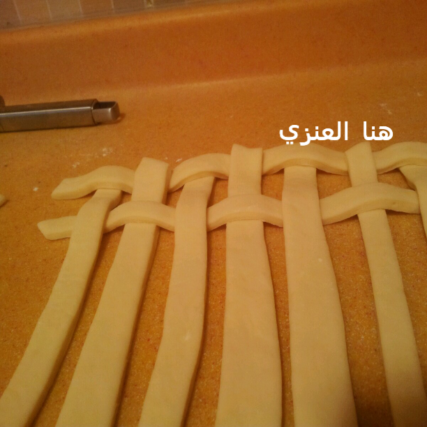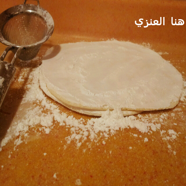 ونشيل العجينة اللي شكلناها براحة جدا ع شئ مسطح