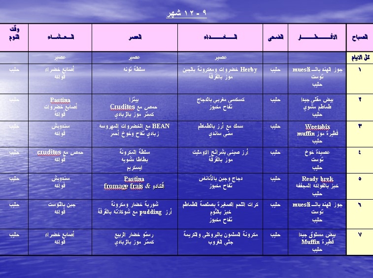 وهذا الجدول مخصص للأطفال من سن 7-9 شهور