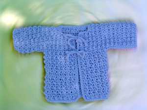 To create ties: Attach yarn to the top of one side of the sweater and ch 25. Do the same on matching opposite side.