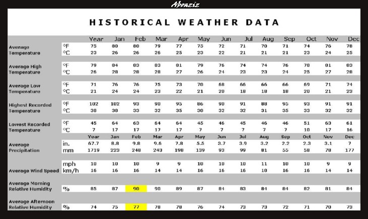 الفترة الأقل إقبالا هي التي تمتد من يناير إلى ابريل (نيسان) حيث يكون النهار أطول مع طقس حار رطب جداً، وفي بعض الأحيان تقع بعض الأعاصير، والزوار في تلك الفترة عليهم أن يكونوا مستعدين دائماً لقضاء عدة أيام بدون خروج وخصوصاً في أوقات الأمطار الغزيرة.و لكن هذه نادره ولا تحدث كل عام وتكون خلال الفترة الممتده بين منصف يناير الى منتصف مارس.
