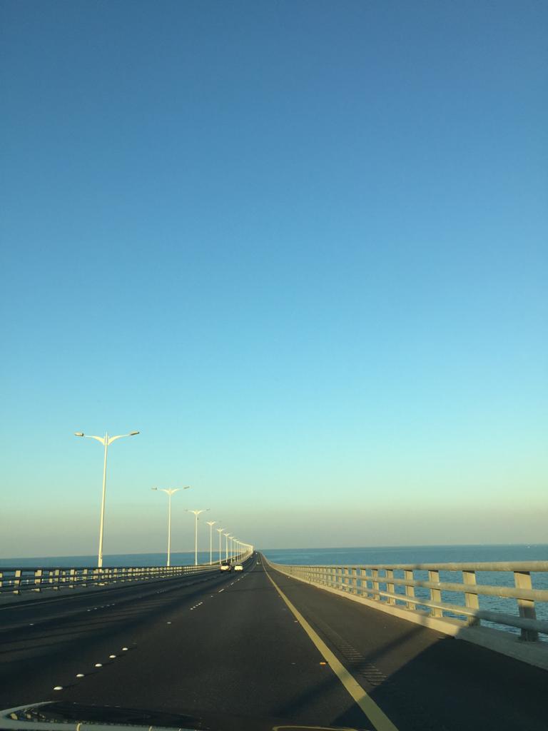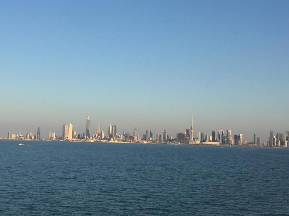 حين ندخل الجسر فعلى يميننا تظهر معالم الكويت كلها الممتدة بهذا الاتجاه..