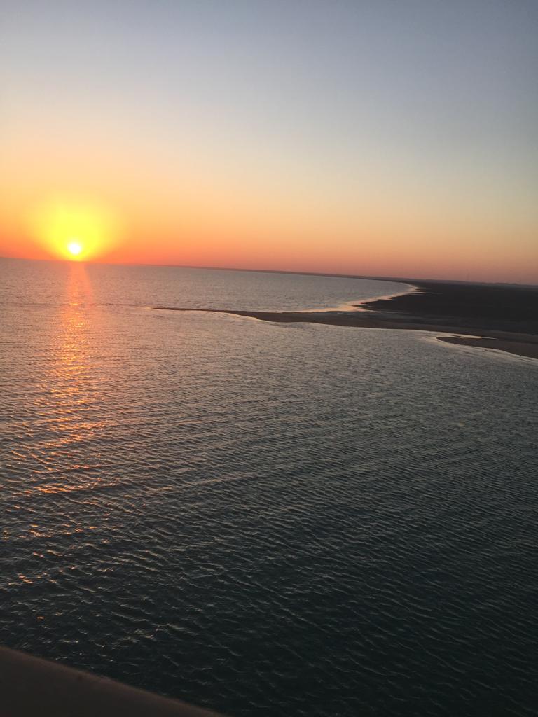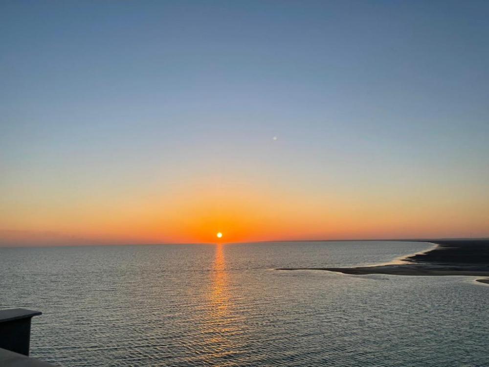 هدوء وسكون ماعدا همس الموج الأزرق وثرثرة الموج اللطيف مما يرسل للأعصاب رسالة الراحة والسعادة والاسترخاء
