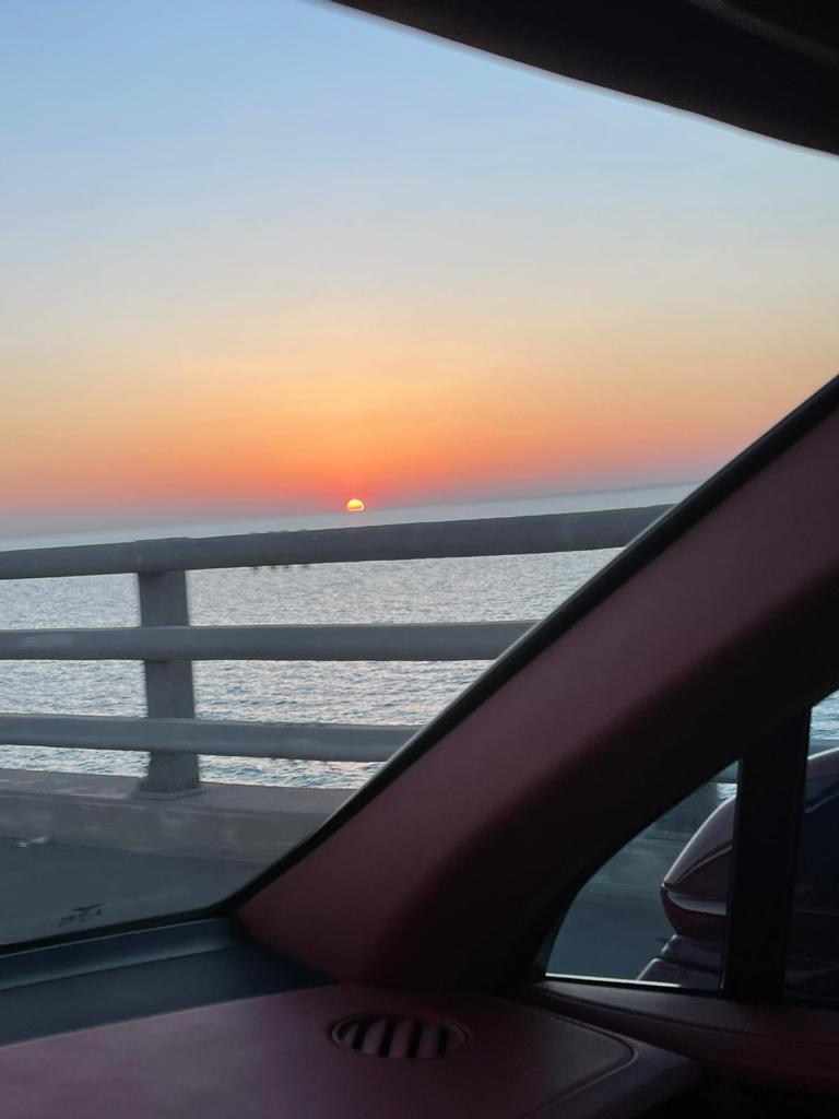 والتطلع إلى اليمين من خلال نافذة السيارة المتهادية برفق ويستغرق قطع الجسر مايقارب نصف ساعة ذهاباً حتى الوصول لبر الصبية