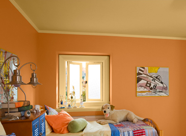 اذا حبيتي الالوان الحاره ولديك مكان ضيق اكتفي بوضعه في جدار او كخطوط وليس لكامل الغرفه .