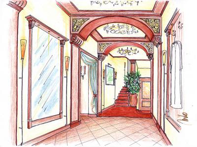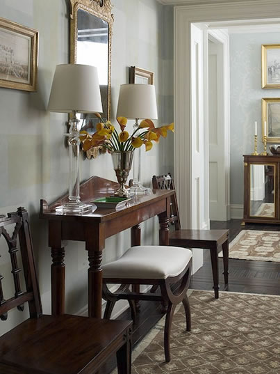 الألوان الفاتحه كالرمادي الباهت والبيج والسكري يعطي المدخل اضاءه رائعه وفخامه .وخاصه اذا كان المدخل بشكل طولي وهنا نستخدم تقنيات الممر في الدهان اللي تعلمناها .