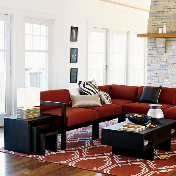 مستوحى من التراث بلونه الفاتح بتدرجات البني ولون اساسي احمر للجلسه واسود محايد