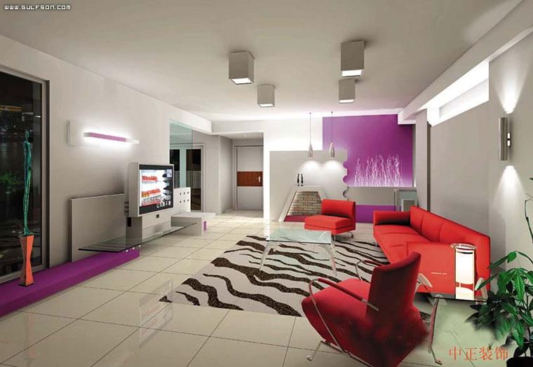 أولا: صورة لغرفة مودرن الوان فاقعة مع لون الجدار حيادي أبيض..