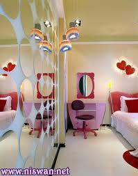 غرفة نوم للبنات واضح انها صغيرة لكن صبغ السقف بلون ابيض والجدار بلون وردي فاتح جدا ووضع مرآه طويلة ساعدت نوعا ما في جعل الغرفة واسعة.