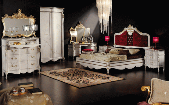 غرفة نوم باثاث كلاسيك مع صبغ الغرفه كلاسيك للون الاسود المحايد