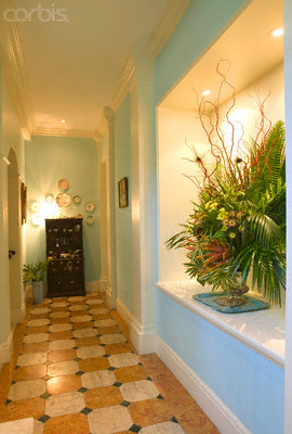 7- ممكن وضع شي يشد الانتباه بنهاية الممر مثل كونسول ناعم او ساعة فخمة او استاند وعليه تحفة.