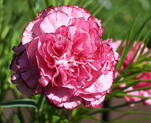 وردة القرنفل الجمال منظرها وشفافيتها وتميزها(فاانااشعر بان الون الغامق الامع باطرفها يحمي الون الفاتح فهو يحمي شفافيتها ونقائها وصفائهاورقتها)