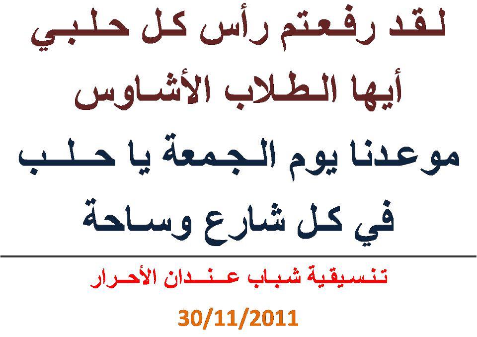 من أحرار عندان إلى طلبة حلب الأحرار.