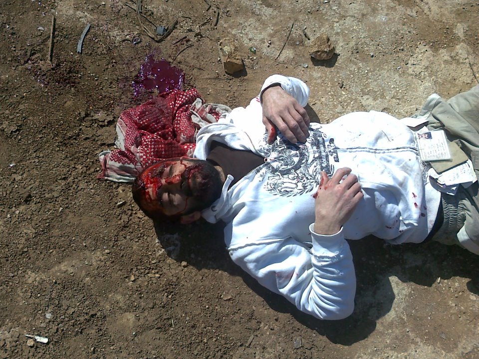 الصورة لشبيح قُتل بالأمس (الجمعة) على إثر الاشتباكات التي دارت بين المتظاهرين والشبيحة في حي صلاح الدين.