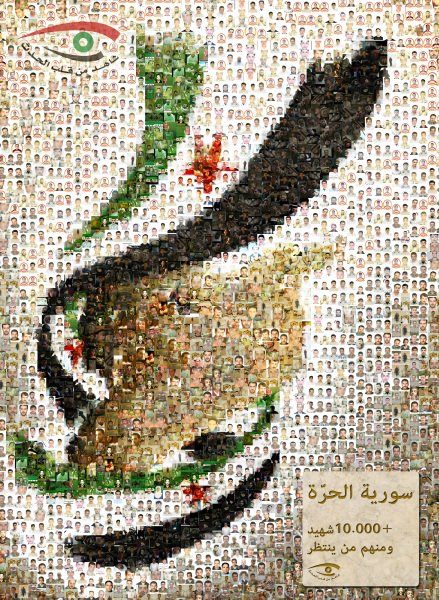 قام فريق عمل صفحة شاهد من قلب الحدث بجمع 700 صورة من صور شهداء الثورة وتكرارها لتشكيل لوحة فسيفسائية رائعة تعبر عن سوريا المستقبل.