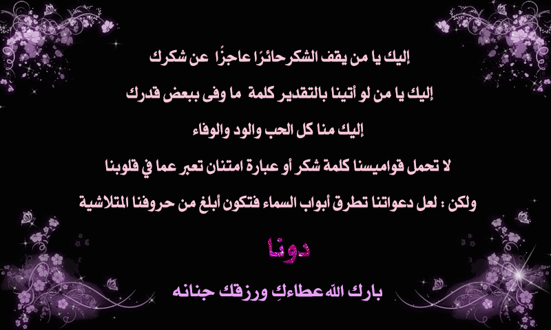 شكر لكم الوفاء والمحبة والفرح والدعوات والفائدة التي تنثرنها هنا