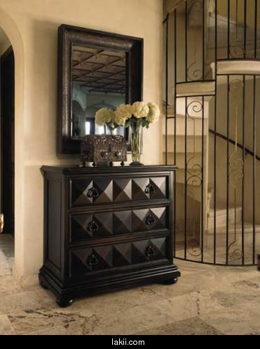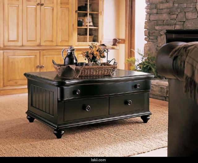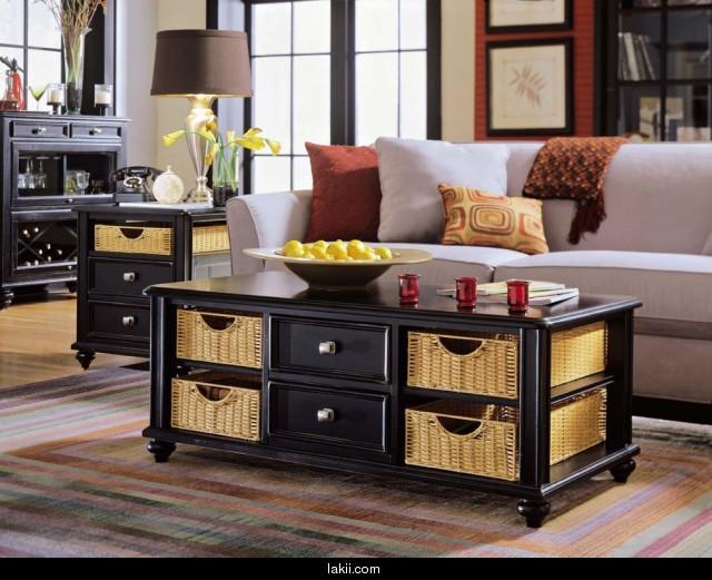 وشكل آخر من الطاولات تم ادخال فيها خشب البامبو فيها كأدراج ونلاحظ وجود طاولة جانبية صغيرة من نفس التصميم ليحدث تناسق فى الديكور