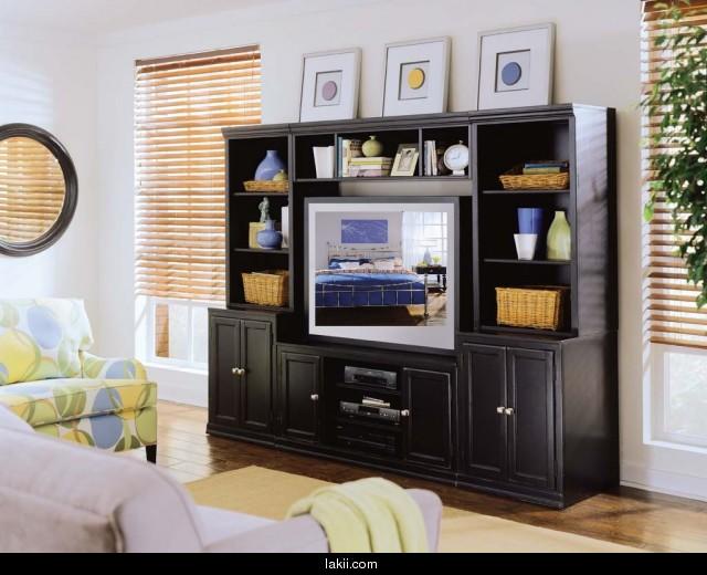 ونسير قليل الى الداخل لنصل الى غرفة المعيشة التى تقضى فيها الاسرة اطول الاوقات مع بعضهم البعض لنرى هذة المكتبة الجميلة باللون الاسود تم تزينها بالكسسوارات الخفيفة والزرع