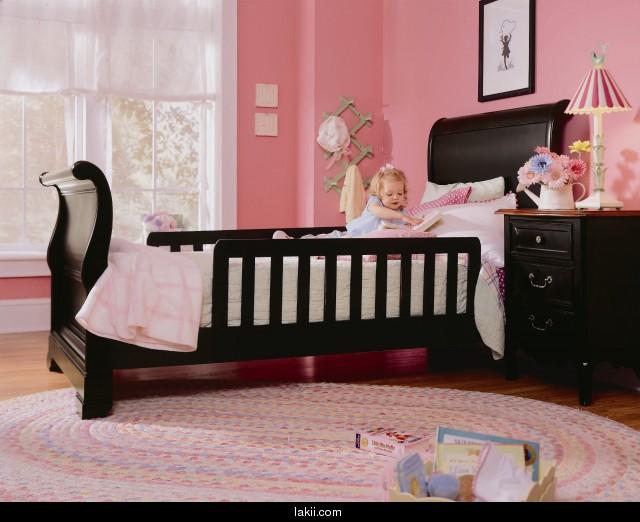 وهنا غرفة ولكن مخصصة للبنات ذات حائط وردى اللون مع فرش وردى فاتح وبعض الاكسسوارات الخفيفة ذات الالوان الفاتحة