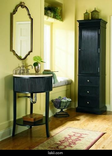 وهنا تم استخدام خزانة وحوض من اللون الاسود