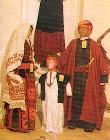 ج- زي ولد للمناسبات مؤلف من قميص قطني أبيض مطرز وجاكيت قطني أسود مبطن وطربوش مزين بابليك من التفتا الحمراء والخضراء «هرمزي» ومغطى بطاسة فضية مزخرفة برسومات محفورة ومزينة بسلاسل وقطع نقدية متدلية حول الرأس وذلك الغطاء المعدني كان يستعمل لوقاية الصبي الوحيد من العين الشريرة.(أواخر الثلاثينات)