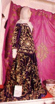 زي لعروس مقدسية (1870) طراز تركي مؤلف من تنورة وجاكيت من المخمل الليلكي المطرز بالقصب على النمط التركي، مع بلوزة من الحرير البيج. يظهر هذا الزي التأثير التركي على الأزياء الفلسطينية إبان حكم الدولة العثمانية.