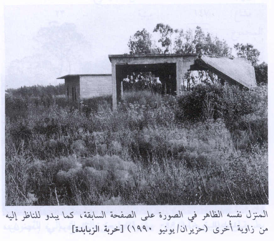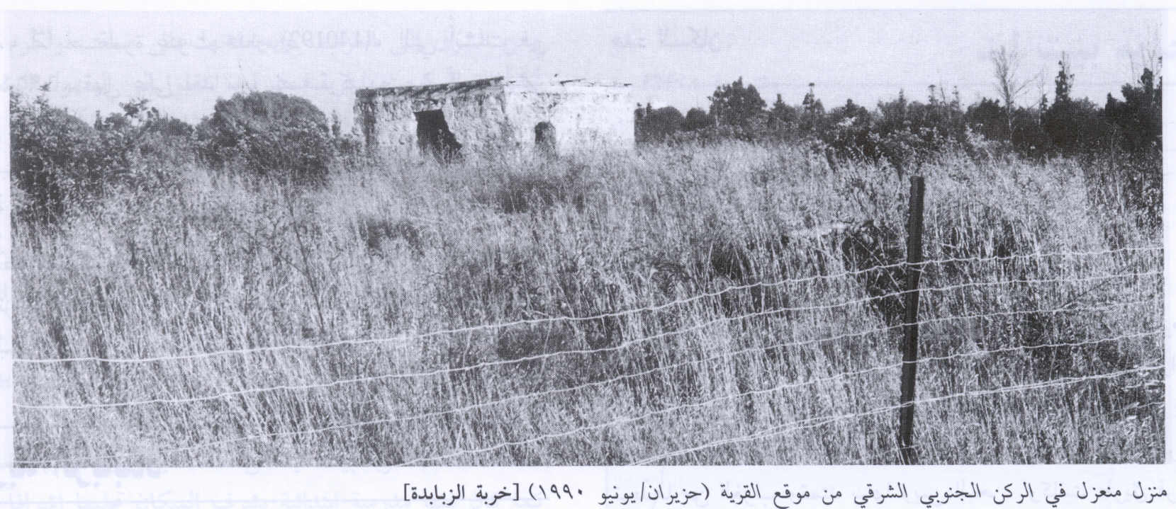 خربة الزبابدة المسافة من طولكرم (بالكيلومترات):20 متوسط الارتفاع (بالأمتار):25 ملكية الأرض واستخدامها في 1944 \1945 (بالدونمات): الملكية: الاستخدام: عربية: 4626 مزروعة: 9129 يهودية: 4884 (% من المجموع) (84) مشاع: 1369 مبنية: غير متاح ـــــــــــــــــــــ المجموع:10879 خربة الزبابده قبل سنة 1948 كانت القرية تنهض على تل قليل الارتفاع يبعد كيلومتر واحد عن شاطئ البحر. وكانت تشرف على حوض وادي الفالق شمالاً وشرقا على قناة اصطناعية تجري من الشمال الى الجنوب لتجفيف المستنقعات المجاورة وكانت كثبان الرمل تحدها من الغرب وتمتد بينها وبين البحر. وكانت طريق فرعية تربط خربة الزبابدة ببلدة قلقيلية في الجنوب الشرقي, صنفت القرية مزرعة في ( معجم فلسطين الجغرافي المفهرس ) وكان يقيم فيها قوم من قبيلة النصيرات استوطنوا المنطقة في زمن غير معروف في أواخر القرن التاسع عشر وصنف خربة الزبابدة بأنها قرية متوسط الحجم عند الطرف الجنوبي لسهل زراعي وفي 1944\1945 كان ما مجموعه 344 دونما من الأرض مخصصا للحمضيات والموز و3839 دونما للحبوب و215 دونما مرويا للبساتين. احتلالها وتهجير سكانها كانت القرية في ناحية تركزت الهجمات الصهيونية عليها في الأسابيع الأولى من الحرب. وكان الشريط الساحلي الممتد شمالي تل أبيب, منطقة تزدحم بالمستعمرات اليهودية فعد من الضروري جداً (تطهيرها) من سكانها العرب قبل حلول 15 أيار \ مايو 1948 ولاقت القرية في أرجح الظن نظير ما لافتة قرية تبصر المجاورة إذا طردت الهاغاناه السكان الباقين في 3نيسان \ ابريل المستعمرات الإسرائيلية على أراضي القرية تقوم مستعمرة يكوم التي أنشئت في سنة 1947 ومستعمرة غاغ التي أنشئت سنة في 1951 على أراضي القرية. القرية اليوم الموقع مهجور وتغلب النباتات البرية والأشجار ولم يبق من منازل الا أربعة سليمة تماما: ثلاثة منها مبنية بالطوب المتماسك بالاسمنت وواحد مبني بالحجارة البركانية الصلبة وتبدو الدعائم الحديدية ناتئة من الركان الحجري الباقي من خمسة منازل مدمرة. وقد أنشئ منتزه تابع لكيبوتس يكوم على حافة بركة طبيعية.خربة الزبابدة المسافة من طولكرم (بالكيلومترات):20 متوسط الارتفاع (بالأمتار):25...