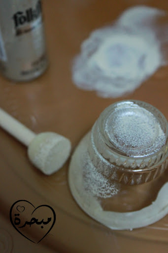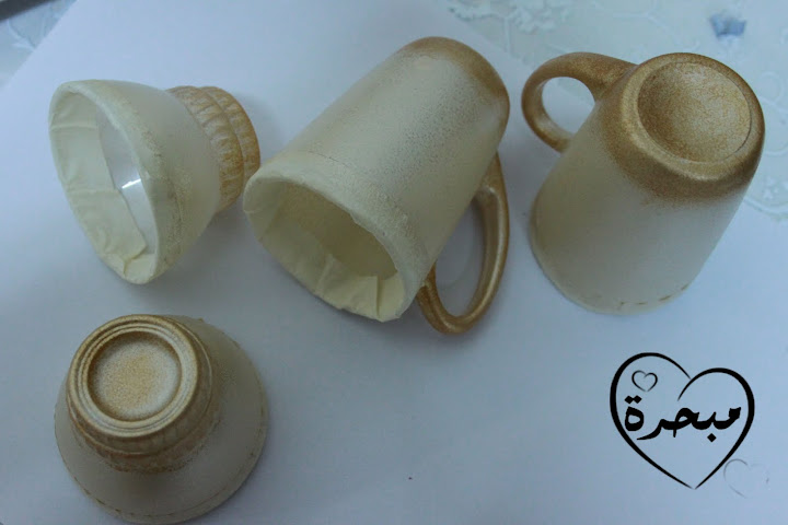 وباللون الذهبي والاسفنجة عملت ضربات على اطراف الفناجيل والصحون