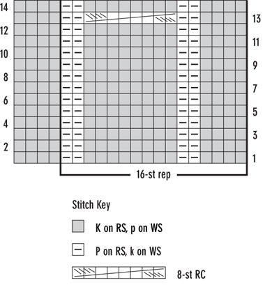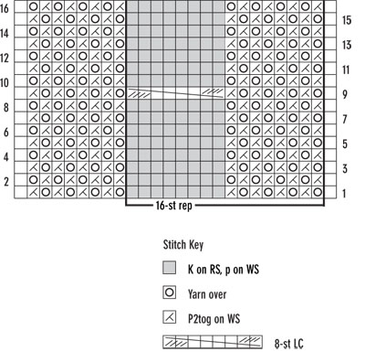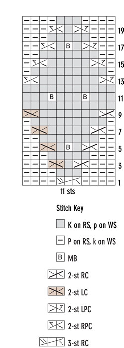 Rows 8 and 10 *P2, k2, p2, k3; rep from *, end p2.