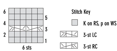Row 3 *P1, skip 2 sts, k third st on LH needle, k first st, k second st, then sl these 3 sts off LH needle; rep from *, end p1.