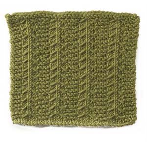 Note: the instructions below are a generic description of how to execute this stitch pattern. For a single repeat, you'd only need five stitches (four plus the 1 extra) but you'd have a VERY narrow piece! In the example shown, there are eight repeats of the stitch, so to make a swatch that looks like the one shown, you need to cast on 33 stitches (4 x the multiple of 8 stitches plus 1 extra)