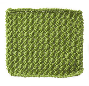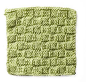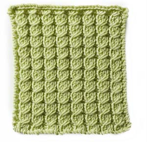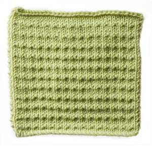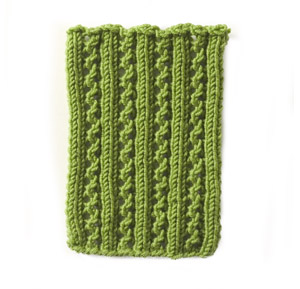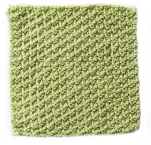 Note: the instructions below are a generic description of how to execute this stitch pattern. For a single repeat, you'd only need two stitches but you'd have a VERY narrow piece! In the example shown, there are fourteen repeats of the stitch, so to make a swatch that looks like the one shown, you need to cast on 28 stitches (14 x the multiple of 2 stitches needed for a single repeat of the pattern.)