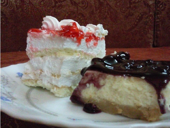 ونتركها تبرد ثم نضع صوص الفراوله او التوت وتدخل الثلاجه
