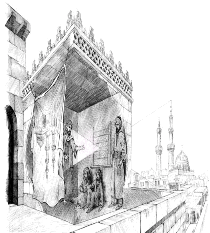 ( الحسن ابن الهيثم) في إعداد تجاربه البصرية،