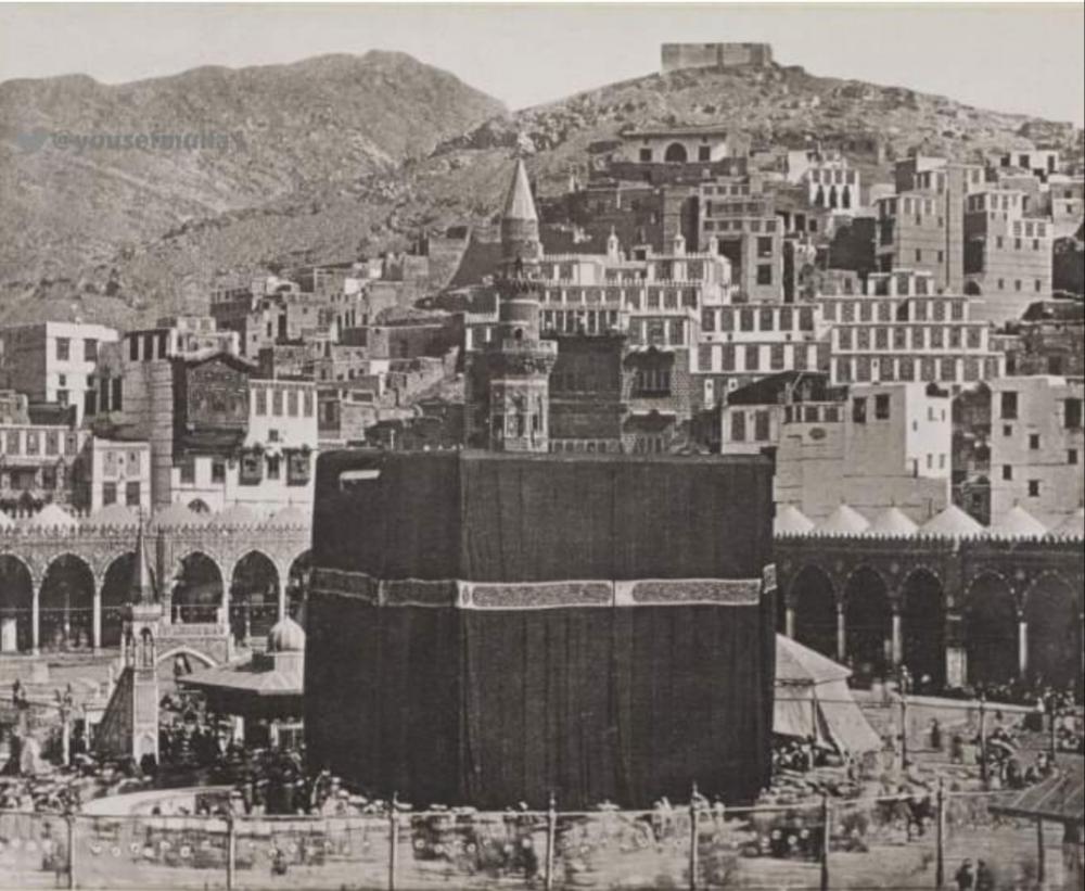 وهذه اقدم صورة للكعبة المشرفة والمسجد الحرام التقطها الفوتوغرافي محمد صادق اللواء في الجيش الملكي المصري عام 1880 م .