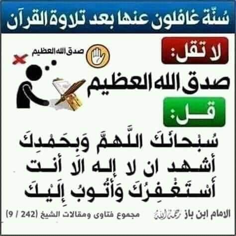 هل لا يجوز قول صدق الله العظيم عند الانتهاء من القراءة .