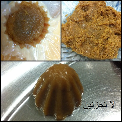 نعجن المقادير سوا ونحشيها ونشكلها بقالب المعمول ونضعها بالبراد تبرد ونقدمها