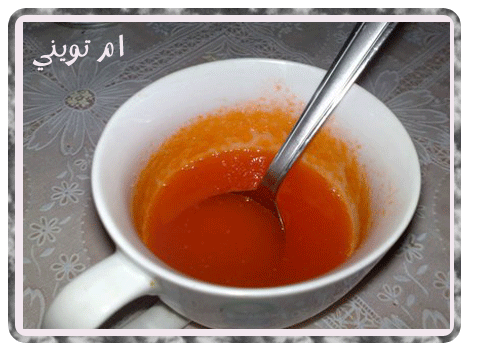 نجهز الوجه (( كريم كراميل مع نصف كوب ماء وملعقتين فيمتو ))