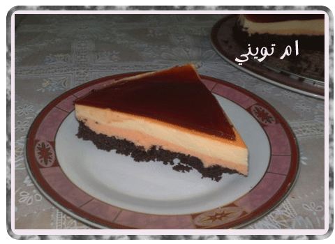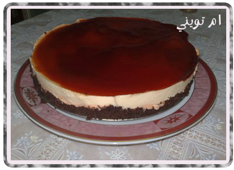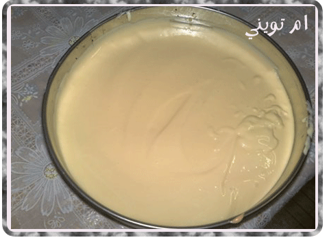 ونحطه على طبقة الكيك وندخله في الثلاجه لما يتماسك ,,