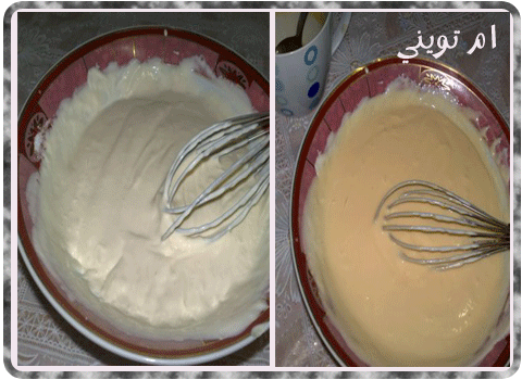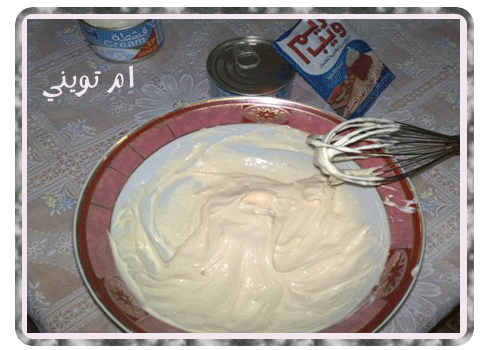 نخلط الريم ويب مع القشطه (( لكل علبة قشطه ظرف دريم ويب ))