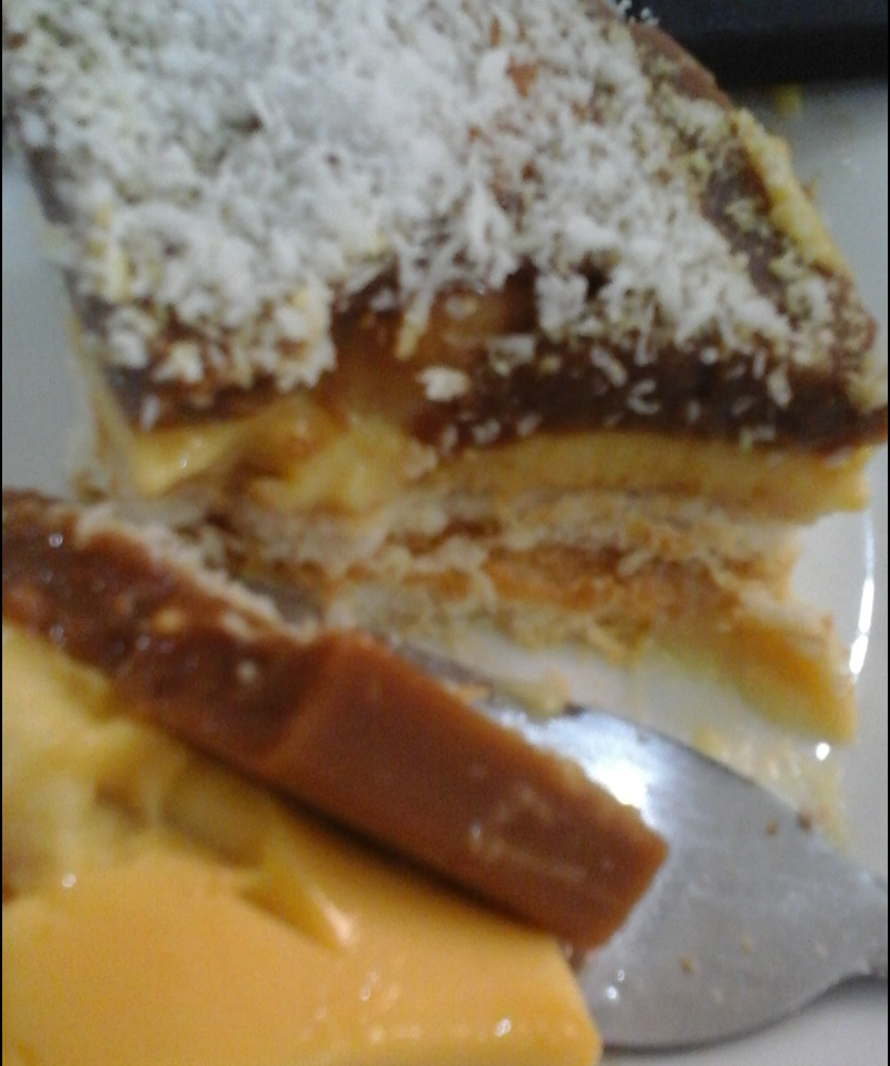 بعدها صبيها عليهم ..دخليها الثلاجة تمسك معك سوي طبقة اخيرة اللي هيا كريم كراميل ونسكويك .واشوي حليب سائل اخر شيء بالثلاجةة حلات الحلا اليوم الثاني عشان المعمول يتقطع وياكك وبالعافيةة يارب ..