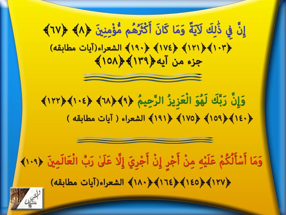 13- " قَالَ رَبُّكُمْ وَرَبُ ءَابَآئِكُمُ الأوَّلِين " (الشعراء 26 , { الدخان 8 " رَبُّكُمْ " } )