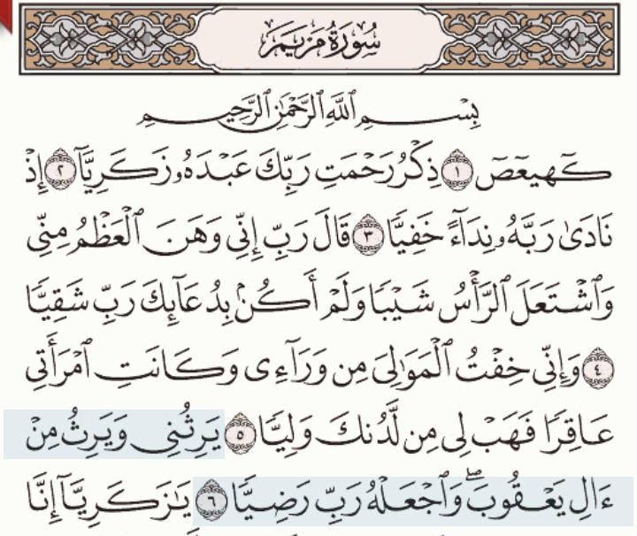 {يَرِثُنِي وَيَرِثُ مِنْ آلِ يَعْقُوبَ ۖ وَاجْعَلْهُ رَبِّ رَضِيًّا}