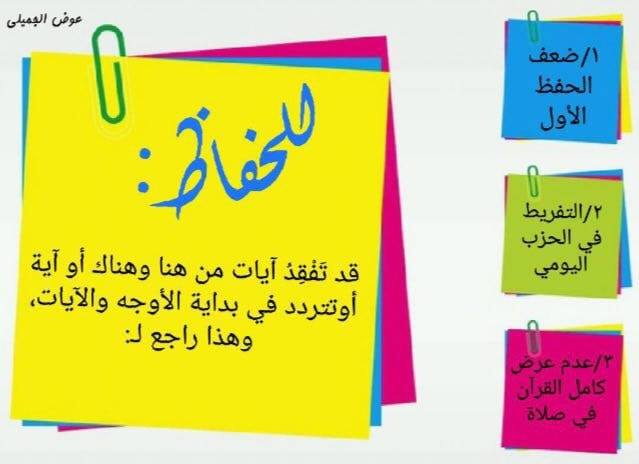 لن تنالوا حفظ القرآن بقوة حفظكم ، ولا جودة فهمكم ، ولا كثرة ملازمتكم للقرآن فقط ؛ إنما تصيبون إتقان حفظهِ بصدق إقبالكم عليه "'تحفظ ، وتُجاهدتتعثَّر ، ثم تنسىٰثم تعيدُ الكرَّة !...تُصيبك النَّوائبثم تتذكَّر أن الثبات بهفتُجاهد !تحفظ ، ثم تنسىٰ ، وتعاودنعم عاود !أجرك محفوظٌ ، وتعبك مجبوروالدُّنيا خواءٌ من غير كلامِ الله يُقيمها ..